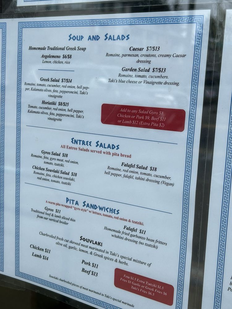 Welcome to Taki's Mad Greek, a delightful haven for Greek cuisine located at 1471 NW 85th St, Seattle, WA. Here, the menu offers a vibrant array of options that perfectly balance tradition and flavor. The salad choices range from classic Greek and Horiatiki to the satisfying Gyros, Chicken Souvlaki, and Falafel Salads, all crafted with generous portions and fresh ingredients.